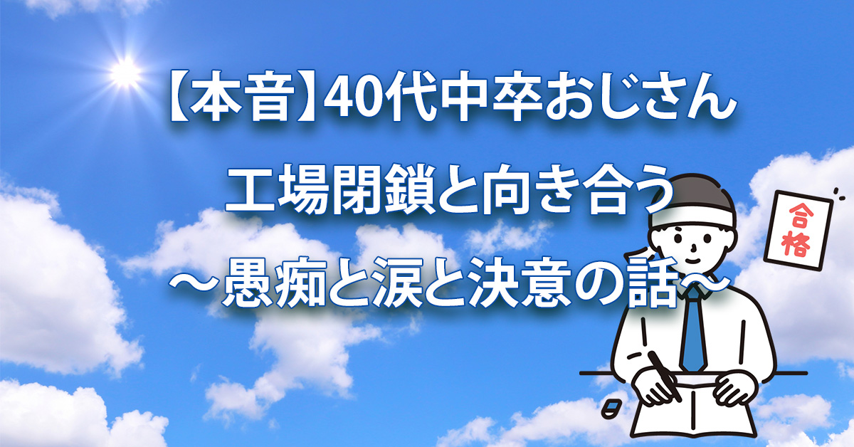 関連キーワード: 40代転職, 工場閉鎖, パワハラ, 職場環境, 中卒, 高卒認定, 資格取得, 家族の支え, 人生やり直し